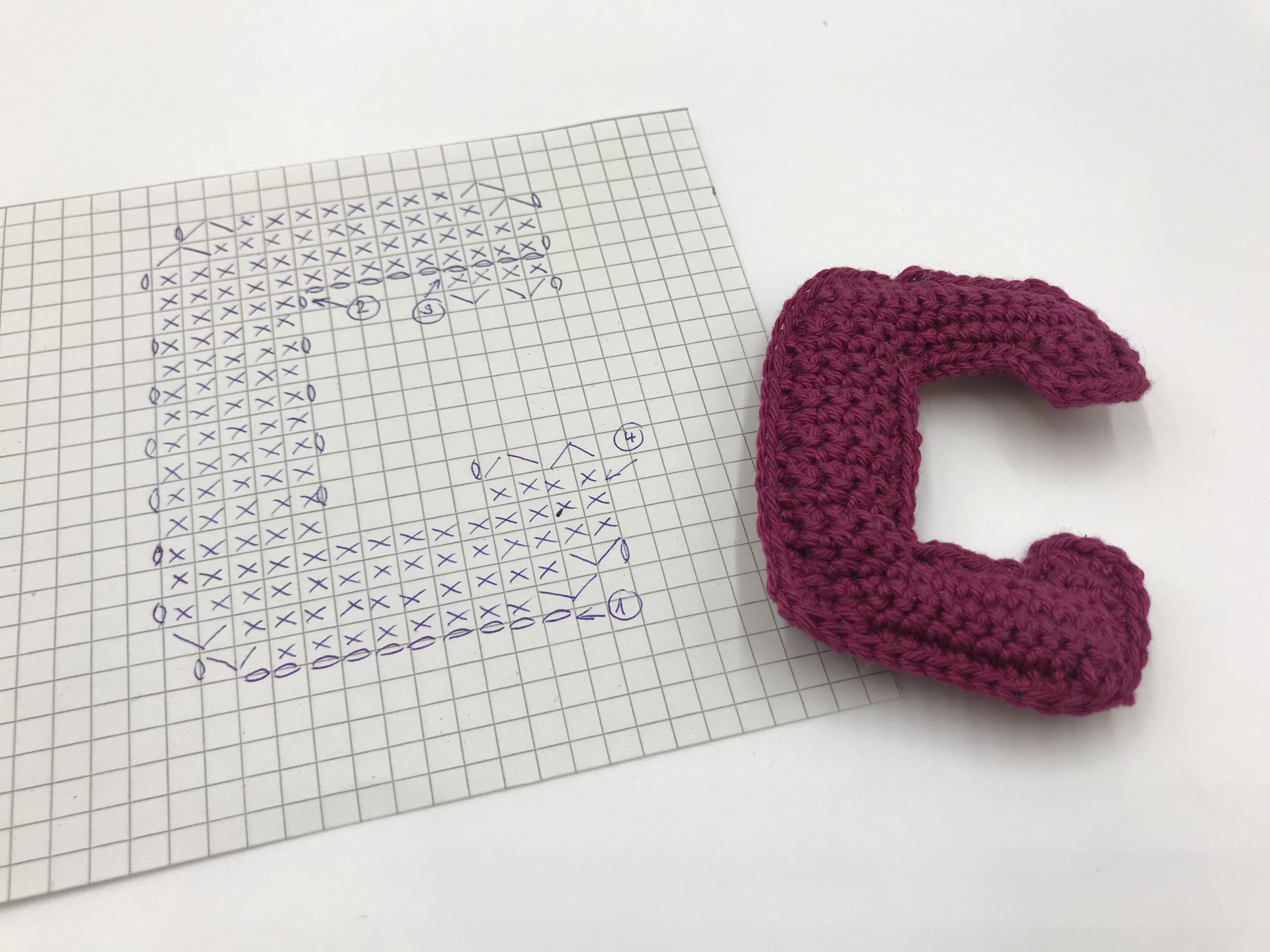 Háčkovaná písmenka A-O - možné použít třeba jako přívěsek na klíče.
