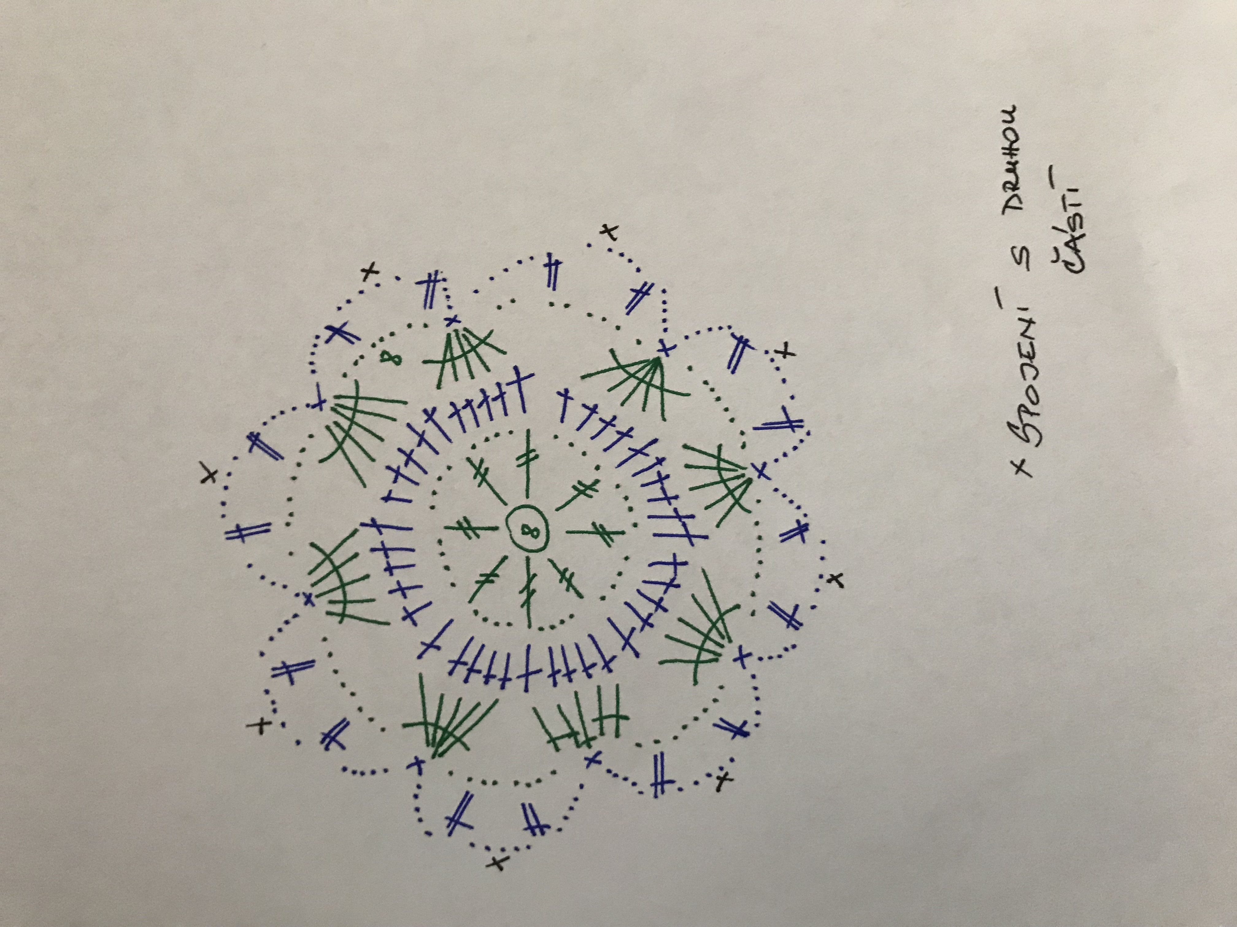 Poslední letošní háčkované vajíčko je opět z 2 polovin podle rozkresu níže. Uháčkujeme první polovinu a ukončíme. Druhou polovinu přiháčkujeme poslední černou řadou. Asi ve dvou třetinách vložíme vajíčko. Buď vložíme plastové vajíčko nebo vyfouklé vajíčko slepičí. Pokud tam vajíčko necháme, nezapomeneme ho dobře umýt.